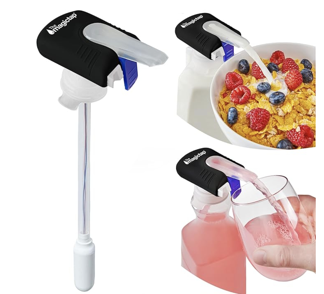 An automatic Drink Dispenser is a battery-powered drink dispenser that attaches to most bottles and jugs. Instead of lifting a heavy container or trying to pour at an angle, you simply press the trigger, and the dispenser pumps the liquid directly into your glass. It’s designed for everyday items like milk, juice, water, iced tea, or cold brew stored in the fridge. What makes it especially helpful is its hands-free, no-lift operation. Many pitchers and gallon jugs can be awkward or heavy, particularly for people who have limited shoulder, elbow, or arm mobility. The user only needs to guide the cup under the spout and tap a button—no tilting or lifting required.